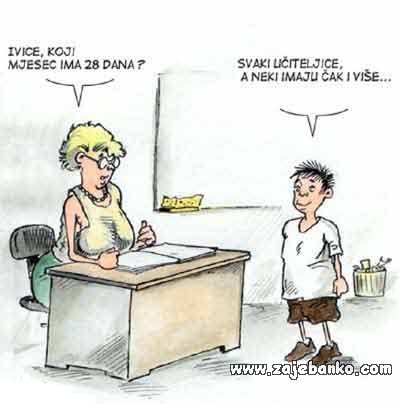 Došao Ivica u školu s kondomom na glavi. Pita ga učiteljica: