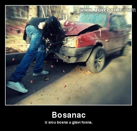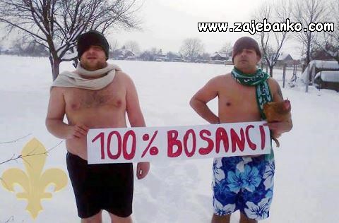 Ovu kategoriju viceva posvećujemo našim dragim prijateljima Bosancima. Šalimo se sa svima, pa je tako red došao i na njih. Viceve o Bosancima prikupljali smo iz različitih izvora. No, ono što je zanimljivo leži u činjenici kako smo neke od najsmješnijih viceva o Bosancima čuli upravo u živom razgovoru s njima samima. To jasno govori kako ovaj narod ima puno smisla za šalu, čak i kada je ona na svoj vlastiti račun. Očito je kako su ovi dragi i srdačni ljudi u stanju izvući maksimum iz svoje ne tako svijetle svakodnevice i nasmijati sve oko sebe. Većina viceva prikazuje Bosance kao priglupe ljude. No imajte na umu činjenicu kako zajednice s ovih naših prostora vrlo rado vole sebi pripisivati tuđe pozitivne karakteristike, a svoje mane prišiti drugima. Možda je točnije reći kako su Bosanci zapravo puno skloniji ”snalaženju”, koje se u mnogim uređenima zemljama naziva krađom. Kako god bilo, ostavljamo vas da se bacite na čitanje ovih viceva za koje vjerujemo da će vam izmamiti osmijeh na lice. Također vas pozivamo da ostavite svoj komentar ili pokoji dobar vice o Bosancima koje smo ovdje propustili spomenuti.